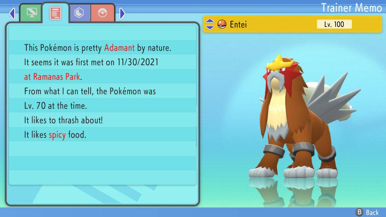 Pokemon Brilliant Diamond and Shining Pearl Entei 6IV-EV Trained