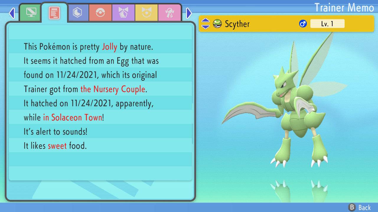 Pokemon Brilliant Diamond and Shining Pearl Scyther 6IV-EV Trained