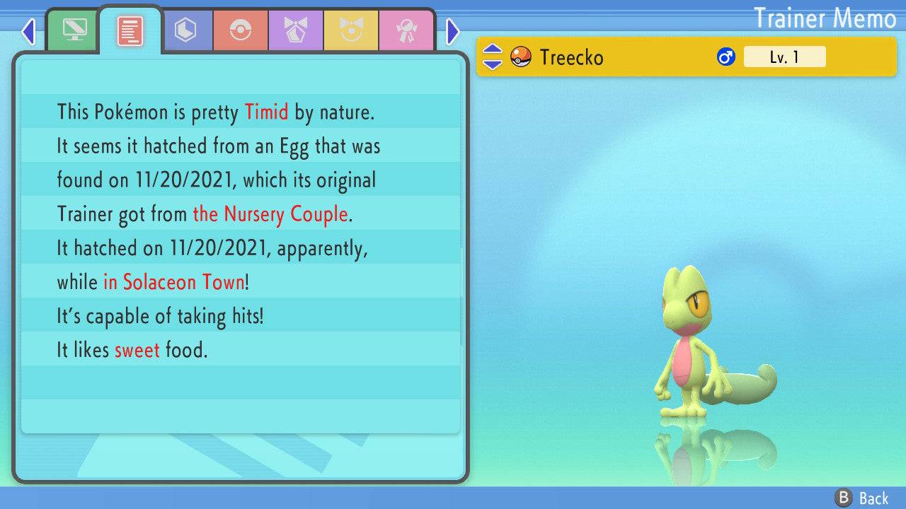 Pokemon Brilliant Diamond and Shining Pearl Treecko 6IV-EV Trained