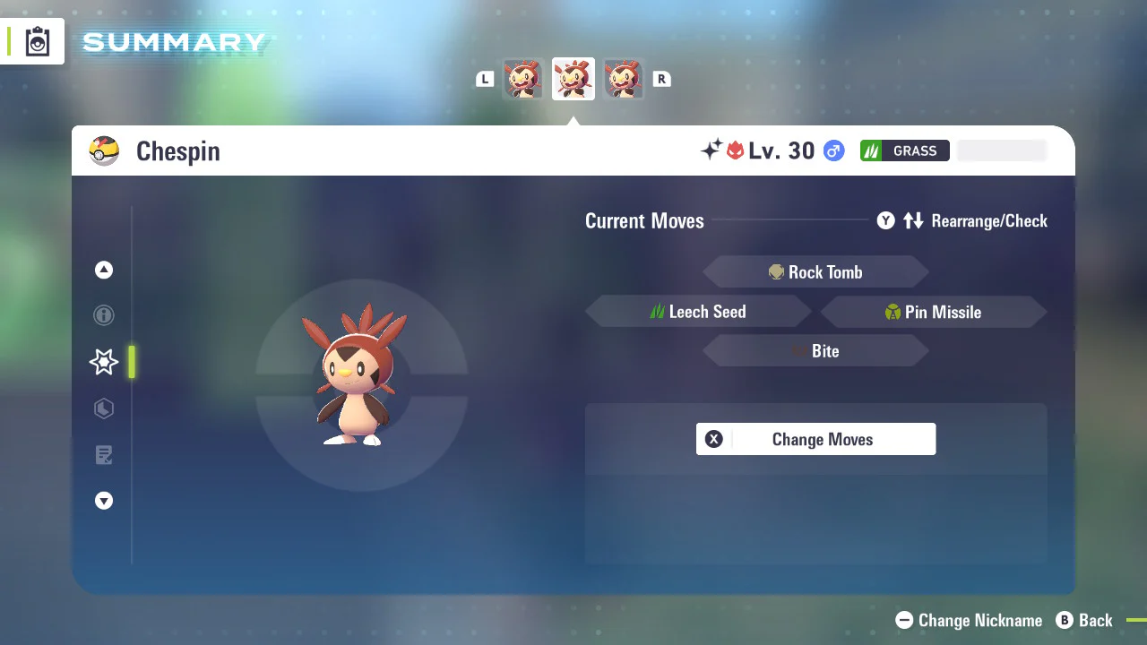 Pokemon Legends ZA Alpha Shiny Chespin 6IV-EV Trained