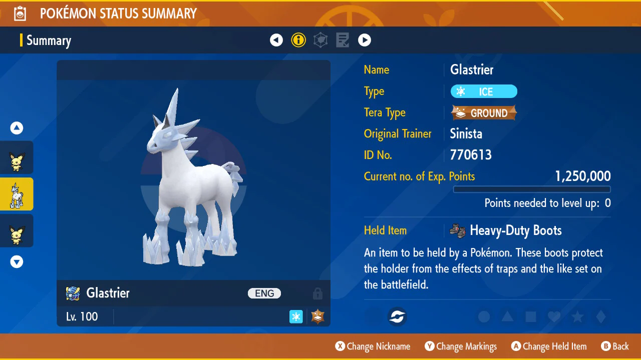 Pokemon Scarlet and Violet Glastrier 6IV-EV Trained