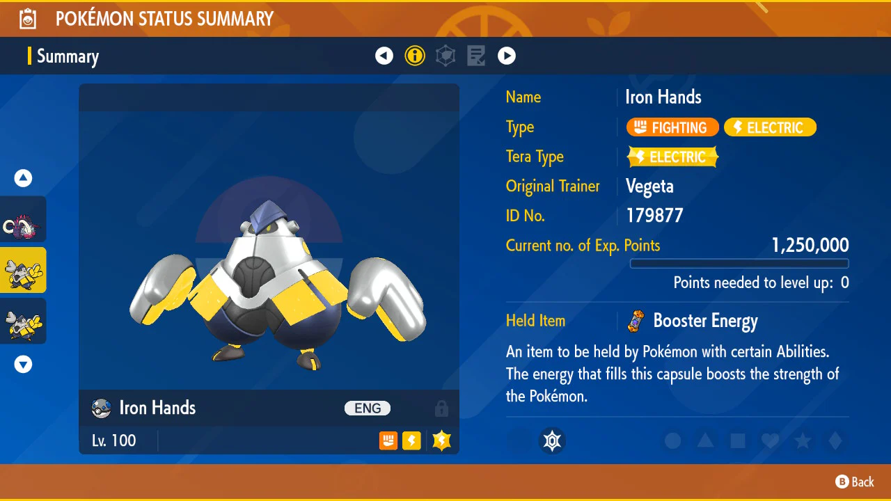 Pokemon Scarlet and Violet Iron Hands 6IV-EV Trained