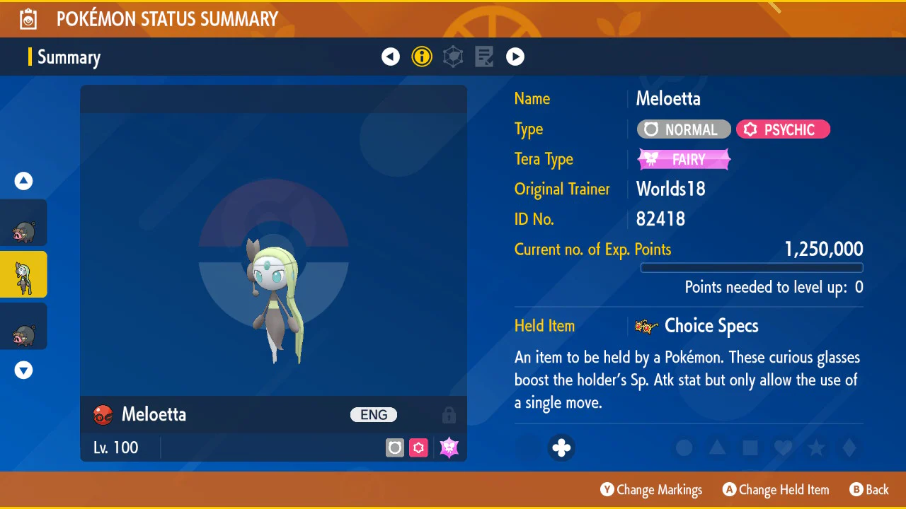 Meloetta @ Choice Specs (Shiny Locked) LV. 100