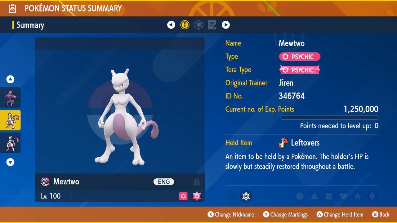 Mewtwo @ Leftovers (Mightiest Mark) LV. 100