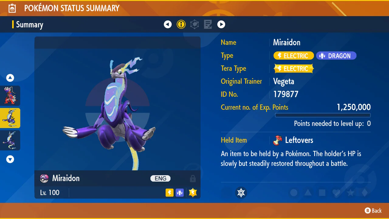 Pokemon Scarlet and Violet Miraidon 6IV-EV Trained