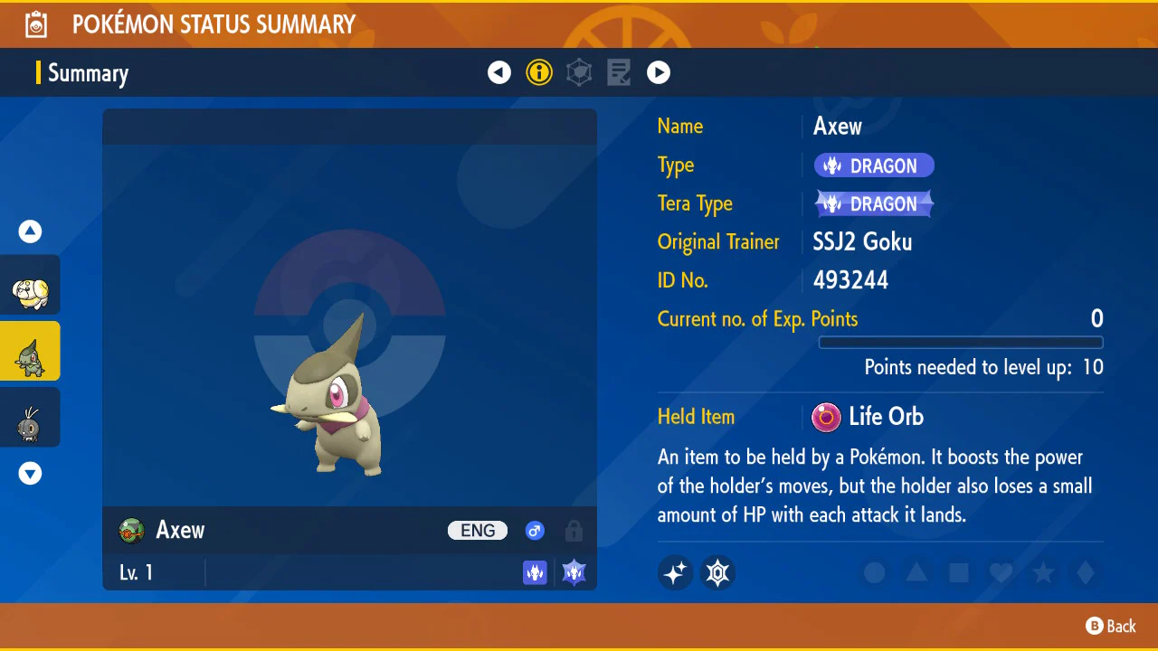 Pokemon Scarlet and Violet Shiny Axew 6IV-EV Trained