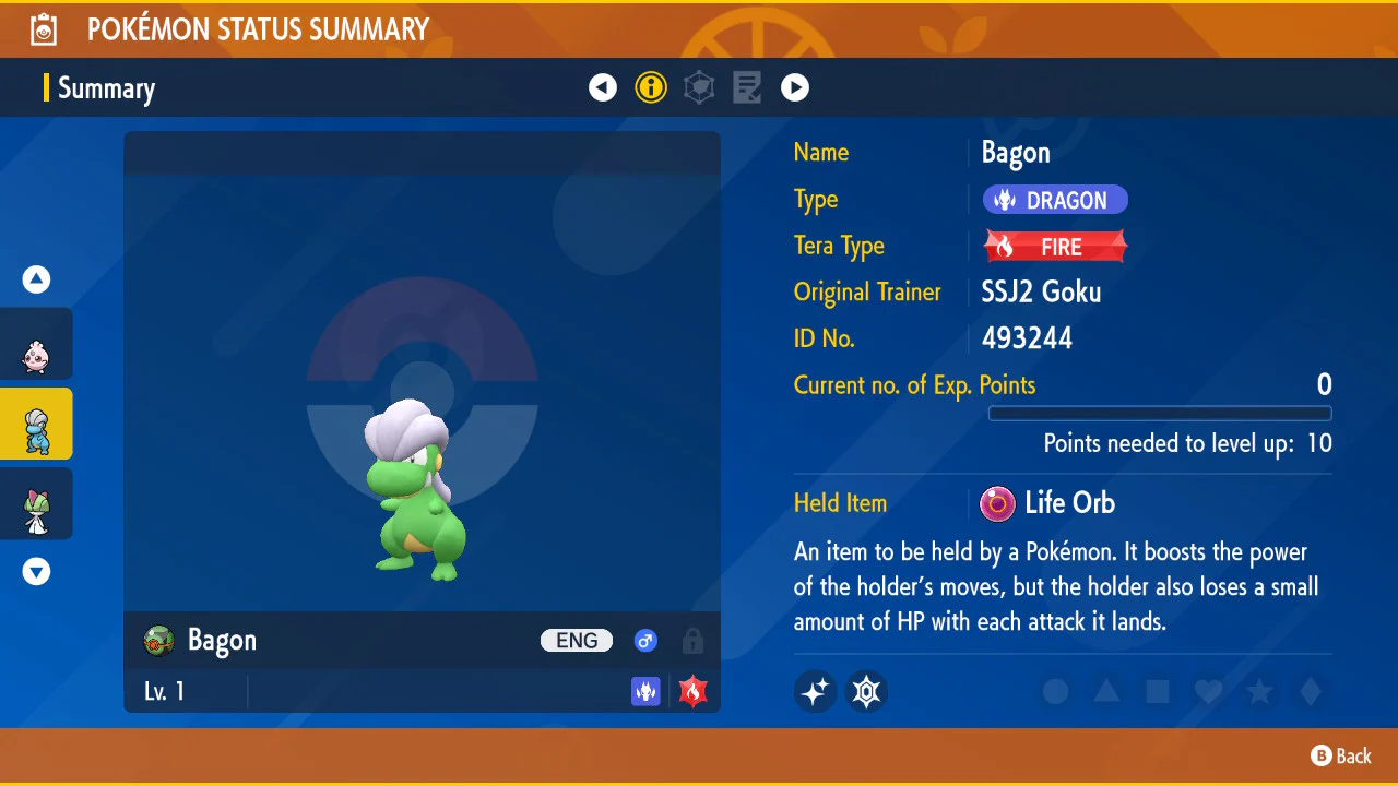 Pokemon Scarlet and Violet Shiny Bagon 6IV-EV Trained