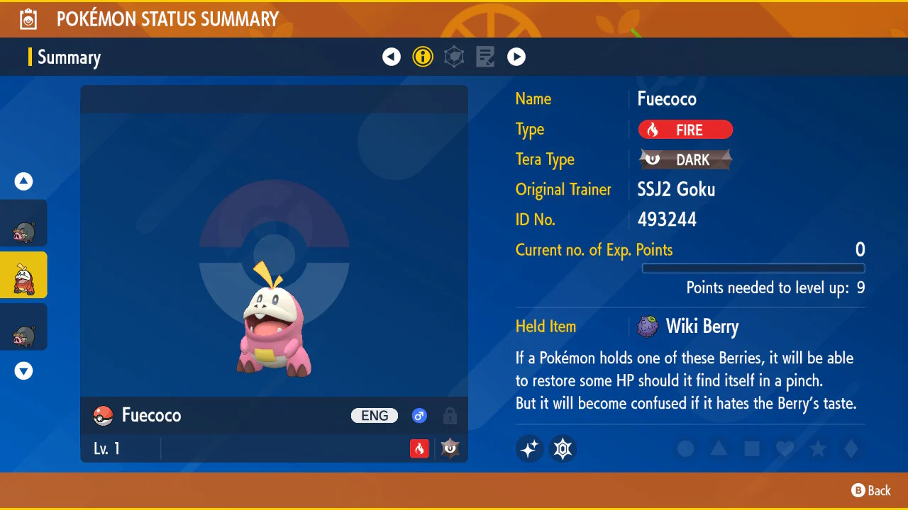Pokemon Scarlet and Violet Shiny Fuecoco 6IV-EV Trained