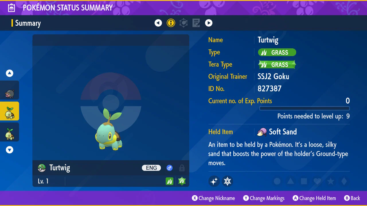 Pokemon Scarlet and Violet Shiny Turtwig 6IV-EV Trained