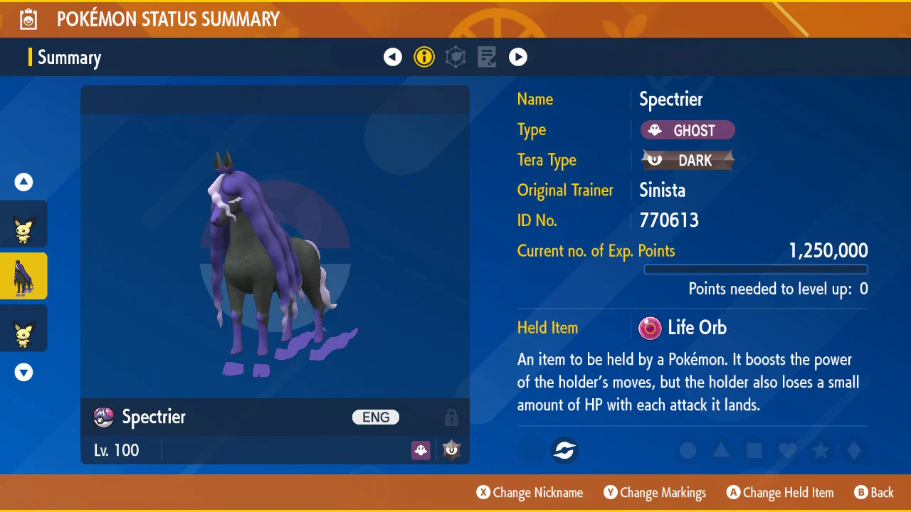 Spectrier @ Life Orb (Shiny Locked) LV. 100